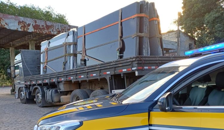 De acordo com a PRF, o veículo transportava 88 chapas serradas de granito, quando foi abordado pela equipe durante uma fiscalização na altura do quilômetro 445 da rodovia.