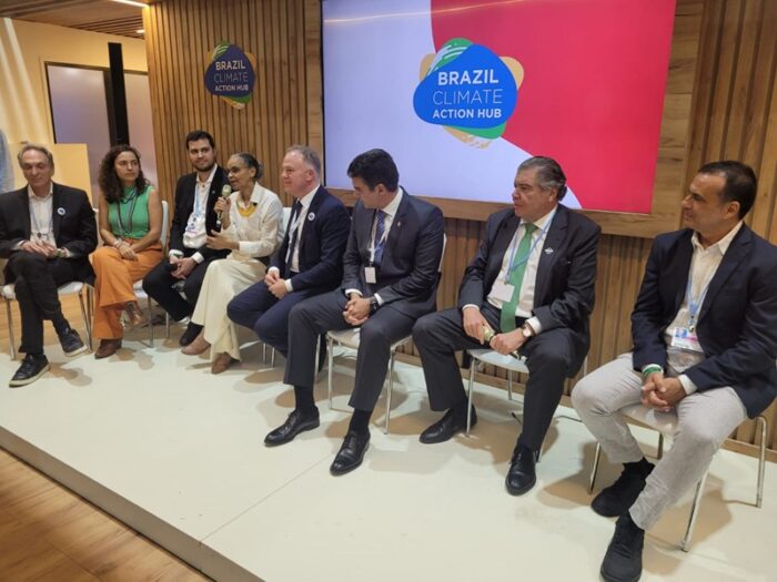 Os governadores Renato Casagrande e Helder Barbalho (Pará), respectivamente, presidentes do Consórcio Brasil Verde e do Consórcio Interestadual Amazônia Legal, realizaram um painel do Governadores Pelo Clima durante a noite desta segunda-feira (14), na COP 27. Marina Silva e Izabella Teixeira também participaram do evento. A coalizão Governadores pelo Clima é articulada pelo Centro Brasil no Clima (CBC).