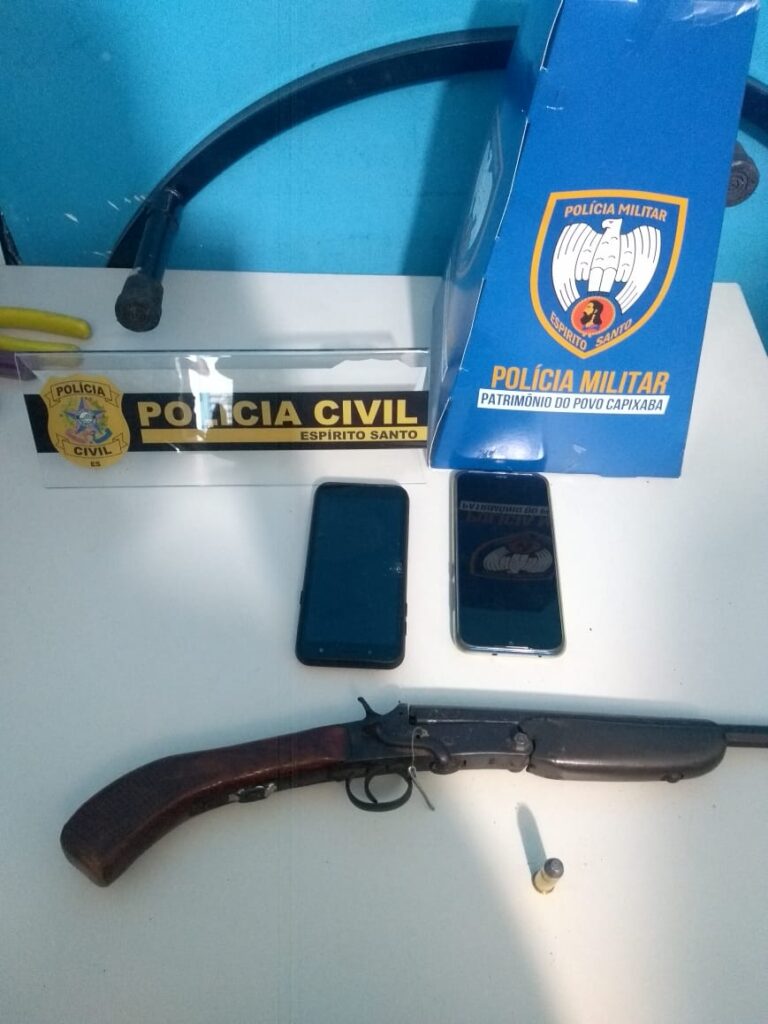 Foram cumpridos cinco mandados de busca e apreensão e dois mandados de prisão. Na ação, cinco adultos foram detidos e dois adolescentes foram apreendidos. Também foram recolhidos uma espingarda, uma garrucha, uma munição calibre 44, um papelote de pólvora, 24 espoletas, 20 buchas de maconha, 17 pedras de crack, quatro celulares e R$ 120,00 em espécie.