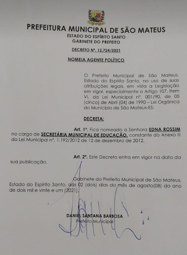 Tags: Daniel SantanaEdna RossimJosé Adilson VieirapedagogaprefeitoSão MateusSecretaria Municipal de Educação