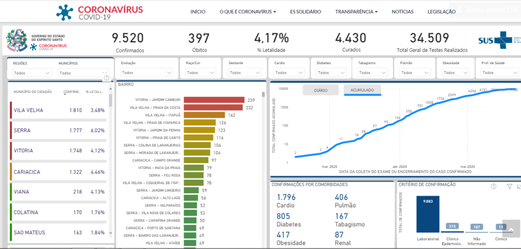 Espírito Santo tem 9.520 casos de covid-19, com registro de 397 mortes