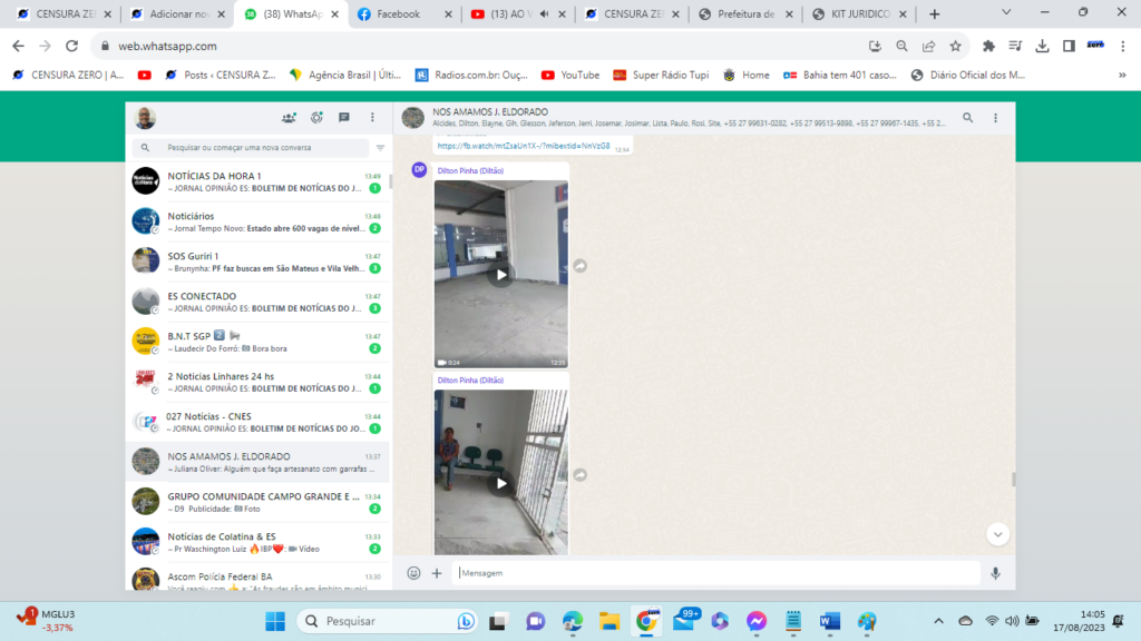 Na tentativa de deturpar os objetivos da operação da PF e tachar a reportagem publicada pelo CENSURA ZERO, irresponsavelmente, como fake news, o chefe do gabinete do ódio Diltão de Daniel, que atua informalmente como porta-voz do prefeito Daniel da Açaí, chegou a gravar dois vídeos nas das dependências da Prefeitura de São Mateus, com as participações da secretária municipal de Educação Marília Silveira e do secretário municipal de Comunicação Júnior Eler, publicando-os em grupos de WhatsApp.