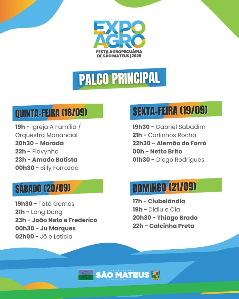 Veja a programação da Festa da Cidade pelos 418 anos de história de São Mateus: