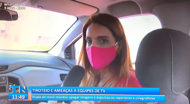 A ameaça foi feita por dois homens numa moto. “Cerca de 40 minutos depois, desceram dois rapazes de motocicleta, um com a mão na cintura, como se estivesse armado, e olhando para a equipe da TV Gazeta, que estava ao vivo. Eu estava no ponto de ônibus, do outro lado da rua, e comecei a monitorar essas pessoas porque desconfiei”, relatou a jornalista Suzy Faria, da TV Tribuna.