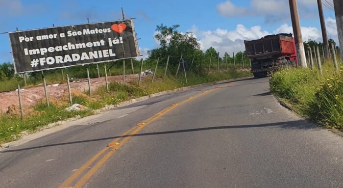 Organizadores do protesto da Comunidade Mateense em favor do impeachment (cassação do mandato) do prefeito Daniel Santana (sem partido) estão tomando providências junto à Polícia Civil e ao Ministério Público do Espírito Santo (MPES). A medida ocorre depois que um outdoor de divulgação da manifestação marcada para quarta-feira (19/01) foi destruído por vândalos simpatizantes do atual prefeito. Ao mesmo tempo, nas redes sociais, a milícia digital (gabinete de ódio) que trabalha para Daniel iniciou uma série de ataques a políticos e empresários de São Mateus, acusando-os de darem apoio a representantes da sociedade civil organizada que compõem a comissão organizadora da chamada Carreata da Justiça.