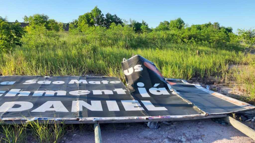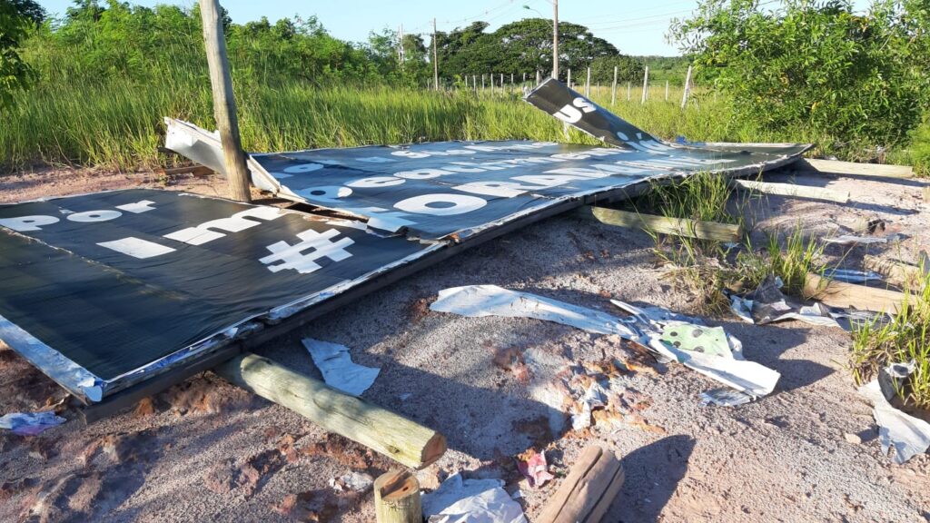 “Um outdoor que havíamos instalado na Rodovia Amocim Leite, podendo ser visto da rodovia de Guriri foi derrubado e destruído, tendo as bases de madeira cortadas com uso de motosserra. Um ato de vandalismo sem tamanho. Temos o direito constitucional de protestar e usar a nossa liberdade de expressão. Por isso, vamos notificar esses fatos à Polícia Civil e ao Ministério Público, e pediremos à Polícia Militar reforço na segurança no nosso evento, marcado para quarta-feira (19). Não vão nos intimidar”, afirmou o líder comunitário, que pediu para não ter o nome publicado, “por motivos de segurança”.