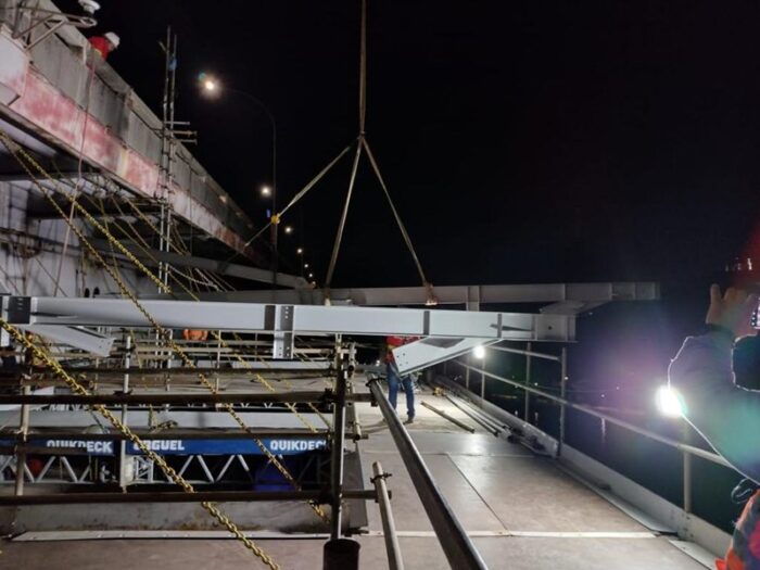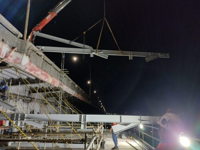 Com seis frentes de trabalho simultâneas, as obras de ampliação da Terceira Ponte e Ciclovia da Vida alcançaram mais um marco importante nesta semana. As vigas que fazem parte do mirante começaram a ser fixadas ao vão Central da Ponte. A maior delas, com 11 metros foi fixada na noite dessa terça-feira (14/06).