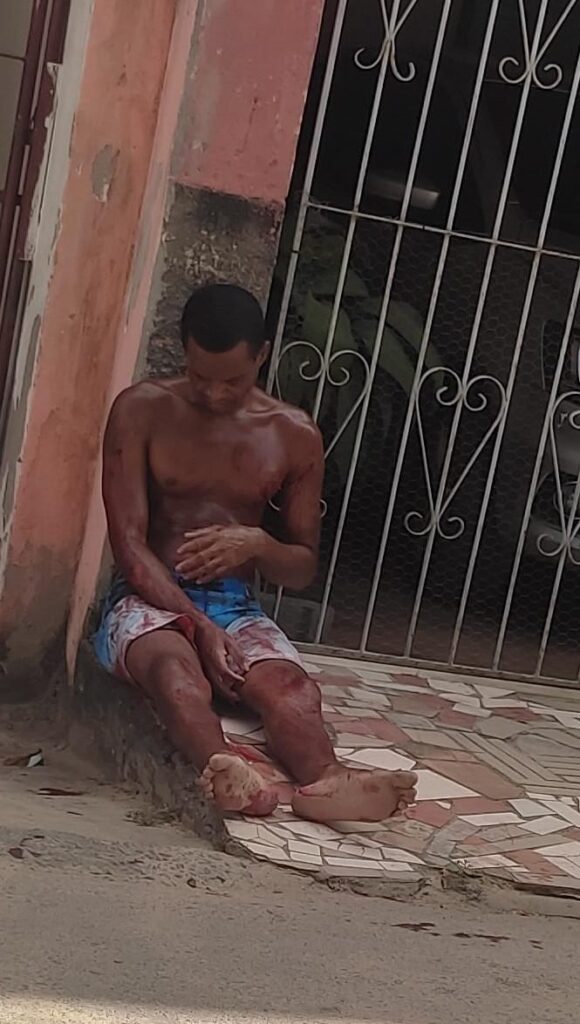 Um internauta enviou para o CENSURA ZERO fotos e um vídeo curto que mostram a vítima ensanguentada, encostada à parede de uma residência.